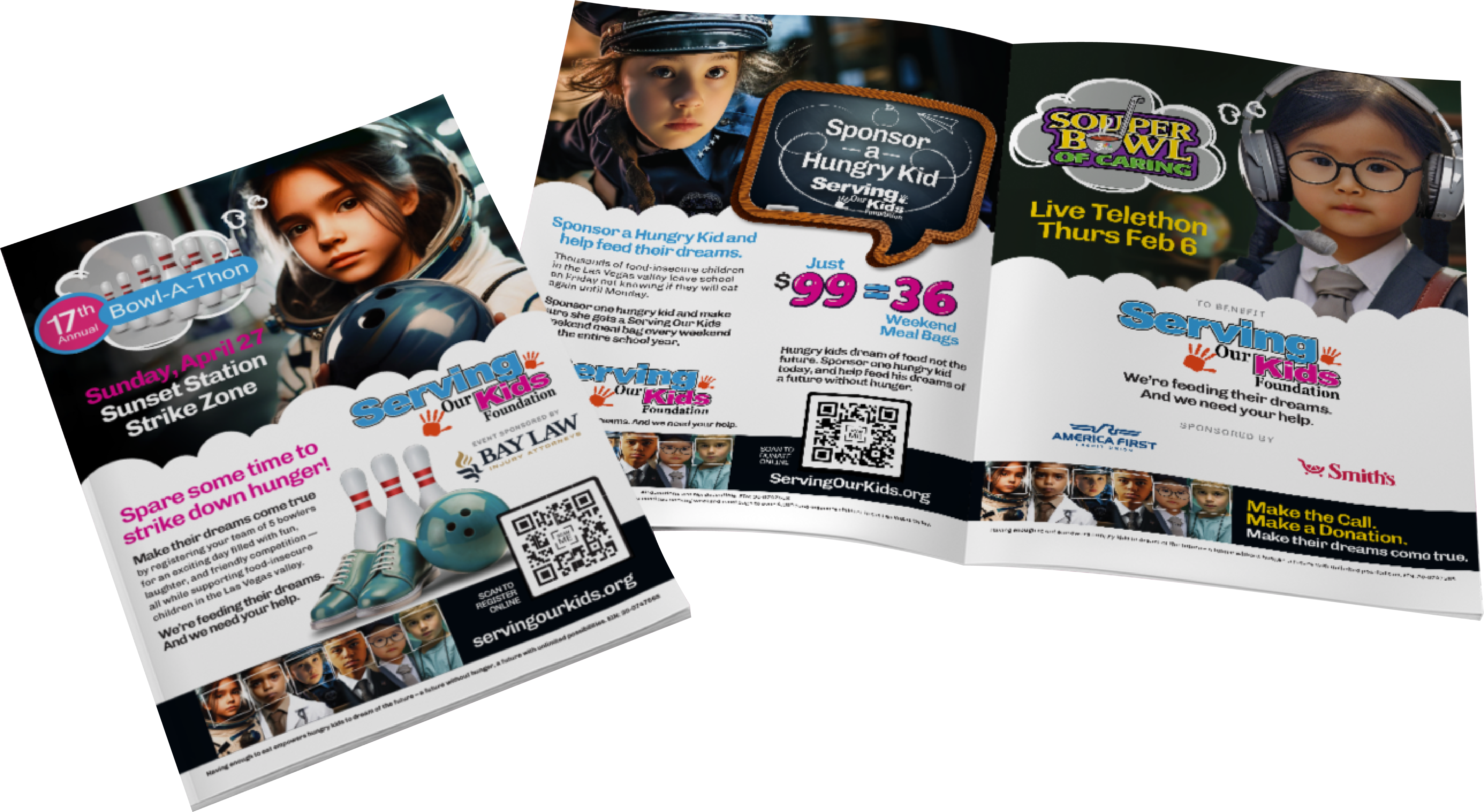 BRAND created a fundraising toolkit and various print and digital collateral materials to improve donor/prospect communication and fundraising efficiency, and promote SOK’s three annual fundraising events. This included on-site event signage and swag highlighting event sponsors for SOK’s annual bowling and golf tournaments.